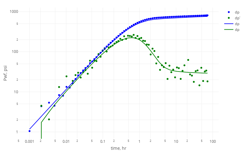 Estimating reservoir parameter using Gringarten-Bourdet Type Curve excel spreadsheet for a vertical well in a homogeneous reservoir with constant WBS and skin factor